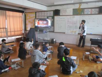 「ラデツキー行進曲」を聴きました。演奏しているオーケストラの動画も見ると,指揮者になったつもりで聴いている人もいました。そこで,みんなで指揮者になったつもりで演奏に合わせて指揮をしてみました。強弱をつけたり,表情を変えたりいろいろな工夫をしている人がたくさんいました。