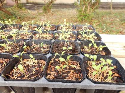 春に咲く花の用意として,ネモフィラとカスミソウの種をまいて育てています。どちらも順調に発芽して育ってきています。この春に中庭を彩る花の仲間が,増えることを楽しみにしています。
