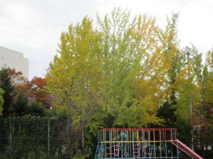 校庭の木々も色づいてきました。