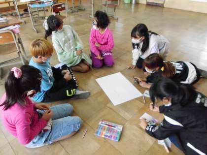 学習発表会のスロガーンが決定したので,みんなで画用紙に書きました。「いっしょうけんめいに声を出し,みんなにとどけ100パーセントの声!」このスローガンを胸に学習発表会を成功させられるよう頑張っていきましょう。