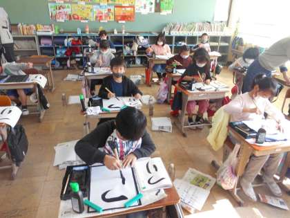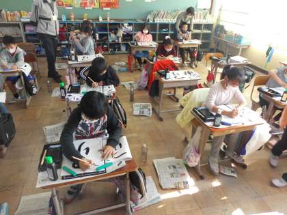 名前の最後の一画を小筆で書き終わるまで,集中して書き進めることができました。