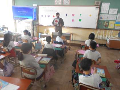 ALTの先生と一緒にゲームをしながら,形の言い方に慣れ親しむことができました。