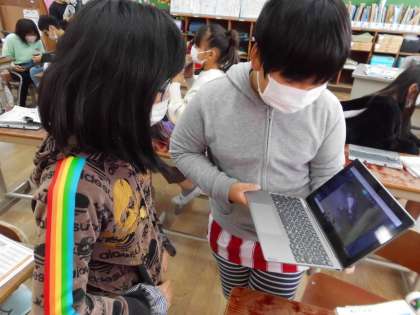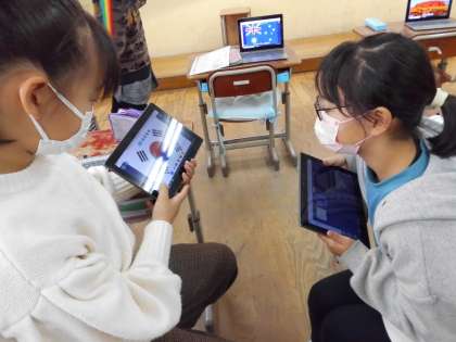 外国語で,自分たちが行ってみたい国について調べ紹介するための学習をしています。学習発表会では,自分たちがみなさんをリモート旅行へいざないます。そのために,まずは自分が行ってみたい国について調べ,それを友達と紹介しあいました。