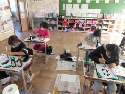 山という文字のバランス,石の部分の形など,いろいろなところに気をつけながら,清書の作品を仕上げることができました。