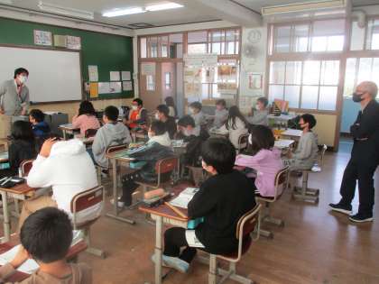 「比例と反比例」の学習で,比例のグラフをかきました。その学習の中で,比例のグラフはいつも0を通っていると子どもたちがみつけました。中学校では0を通らないグラフも習うことを支援に来ていただいている中学校の先生に教えてもらいました。「え!そんなことあんの?」と子どもたちは驚いていました。