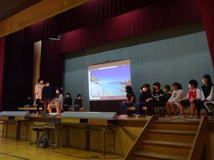 せりふのほぼすべてを英語で行い,友達へ質問した時も英語でやりとりするなど,学習