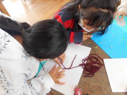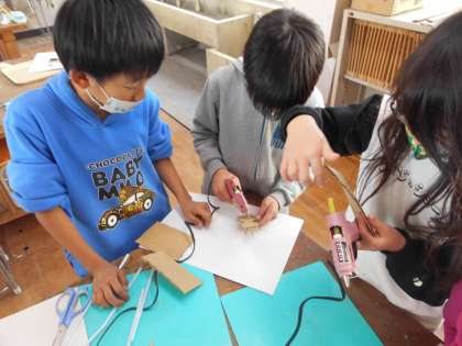 ボンドやグルーガンを使って,台紙の上に表していきたいものを貼り付けていきました。
