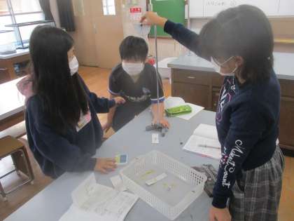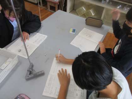 「ふりこの動き」の学習で,今回は「ふりこの1往復する時間は何によって変わるのか」を調べてみました。予想では「ふりこの重さ」「ふりこの長さ」「ふりこのふり幅」「ふりこの形」が関係するのではないかとなりました。そこで,実際に10往復する時間を計り,平均を計算して1往復の時間を計算してみました。これから2時間かけて確かめてみます。予想は合っているかな?