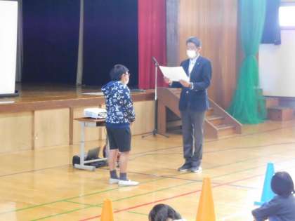 良い歯の表彰と書写の表彰をしていただきました。よく頑張りました。