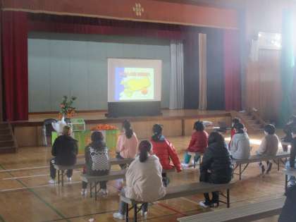食育・農育授業としてみかんについて学習しました。和歌山県の有田市のみかん農家の方々に来ていただいて,みかんの育て方,みんなの家に届くまでどんなことをしているのかなどを教えてもらいました。最後には,おいしいみかんの見分け方やむき方を教えてもらいました。その後,実際に自分で選んで食べました。すごくおいしかったです。