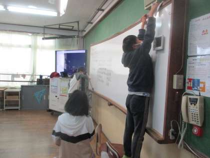 「物を生かして住みやすく」の学習で,ごみやよごれの多いところを掃除しました。班のみんなで掃除場所を決め,ごみやよごれに合った掃除の仕方や道具を考えました。そして,班で分かれて掃除をしました。掃除の仕方を工夫して掃除していました。
