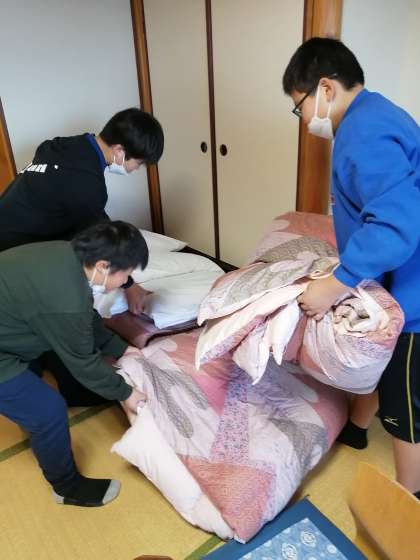 昨日の夜はぐっすり寝られた子も多く、みんな元気です。起きてふとんを片付けたり、荷物整理をしたりしました。テキパキ協力してやっていました。