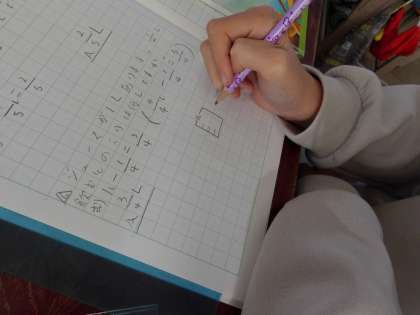 たし算の時と同じように分母はそのままで,分子だけで計算すればよいと考え,問題に取り組みました。