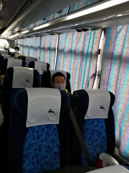 楽しかった修学旅行の活動も全て終わりました。全員バスに乗り込みました。帰ります〜