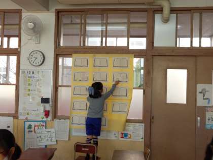 それぞれが書いた紹介カードを掲示すると,早速,友達の紹介カードを読み,その本を手に取って読んでいました。