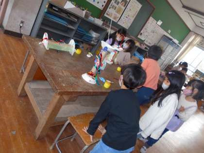 また,一人一人の作品の転がった時の面白さをみんなで見合いました。