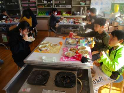 いざ,試食!「おいしい!」という声がいろいろなグループから聞こえてきました。ぜひおうちでも作ってもらってみてください。