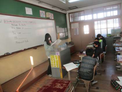 「This is my town.」の学習で単元最終のパフォーマンステストをしました。自分の町について,どんな場所があるか,そこでどんなことができるかなどをみんなの前で発表しました。「Do you like 〜?」などと途中で友達にたずねたり,「Me,too!」「It's cool!」と友達の発表に反応したりしている人がたくさんいました。