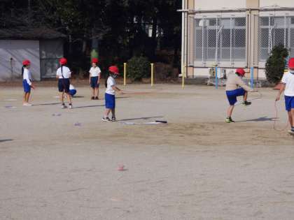 短縄で「りょうあしとび」「そのばかけあしとび」「かけあしとび」に挑戦してきました。