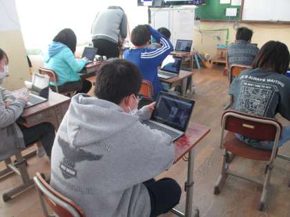 今日は,その時に自分が活けた作品に名前や紹介をつけて,ロイロノートで交流します。