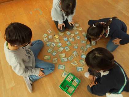 でも,繰り返すうちに,絵をヒントにしながら絵札を取る様子も見られ,かるたあそびを楽しんでいました。