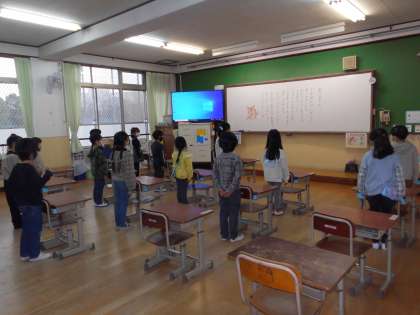 始業式は放送で行いました。話を聞いている姿を見て,さらに「やさしく つよく かっこいい」1年生になってくれるだろうと期待がふくらみました。