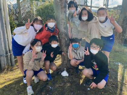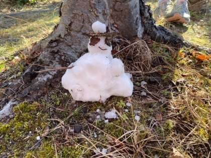 下校時にはすでに雪は溶けてしまったのですが,木陰にひっそりと雪玉が置かれていました。めったとない雪日和を,思う存分楽しんだ子どもたちでした。