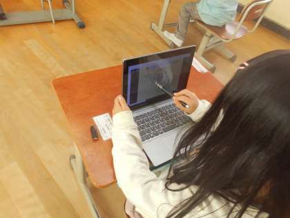 最初は,「え,どう描くの?」と戸惑っていましたが,慣れてくるとそれぞれが鼻歌を歌いながら,たぬきの絵を描いていました。