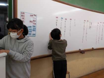 12月,1月の生活目標の「物を大切にしよう。」をふり返りました。物を大切にする,とはどういうことなのか,一人一人が自分ごととして考えて過ごしてきたことをふり返っていました。