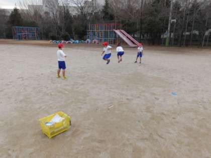 1時間の中で,他にも音楽に合わせて「ゆっくりかけあし」をする運動もして,体をあたためています。