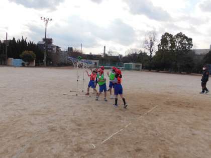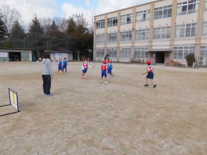ルールに慣れてきた子は,「前に行って。」「ゴールの方へ行って。」と指示を出したり,「こっち。」と呼んだりしてチームのみんなにアドバイスをしていました。