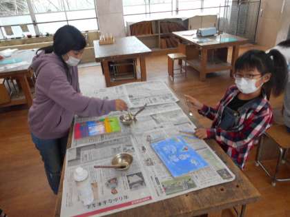 ニスを塗って艶が出ると,描いた絵の雰囲気も少し変化があるようでした。
