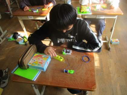 「電磁石の性質」の学習で,電磁石は極を変えることができるのかを調べました。子どもたちは「電池を増やす」「鉄心の向きを変える」「電池の向きを変える」と極を変えることができるのではないかと予想しました。そこで,この3つのパターンで極が変わるかを実験しました。すると,「電池を増やす」「鉄心の向きを変える」は極は変わらず,「電池の向きを変える」ということがわかりました。