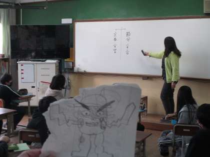 教室を回っていると,朝の会で節分の由来や意味について担任の先生と子ども達が話していました。