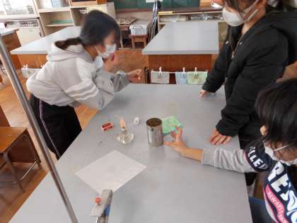 金属,水,空気を熱してみて,どのように温まるかを調べてきました。今日は,欠席していた人の確かめと,おさらいのためにもう一度実験をしました。アルコールランプを使う前に準備をすることやマッチで火をつけることにも慣れてきて,アルコールランプに火をつけたり消したりすることも手際よくしていました。