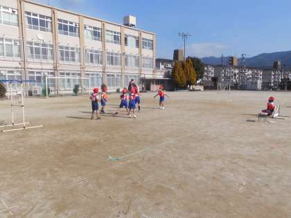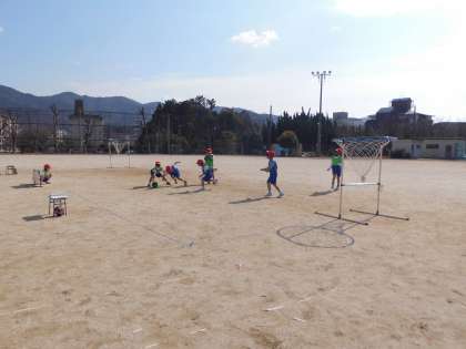 そして,自分の役割が済むと,グループで力を合わせて簡易ゴールを運んび,素早く準備を進めていました。