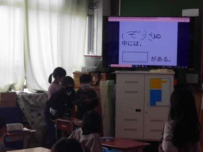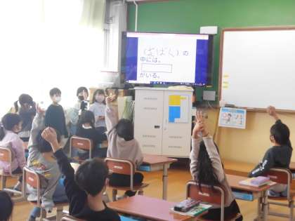 と,友達が考えたクイズに答えながら,「いる」「ある」の違いをしっかりと確かめていました。