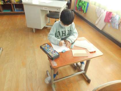 読んだ後,「この後どうしたい?」とたずねると,「また頑張りたい。」「お手紙書きたい。」と返ってきたので,みんなでお手紙を書きました。