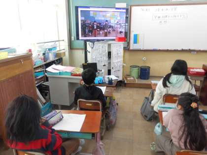 それぞれの学年の学級目標をふりかえる動画を見ながら,「学級目標を意識して生活していることが伝わってきた。」といろいろな子がふりかえりに書いていました。