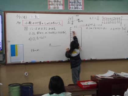 小数のたし算と同じように0.1が何個分かで考えると,整数での計算ができるということを,計算問題を解きながら,しっかりと考えることができていました。