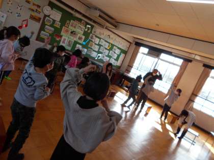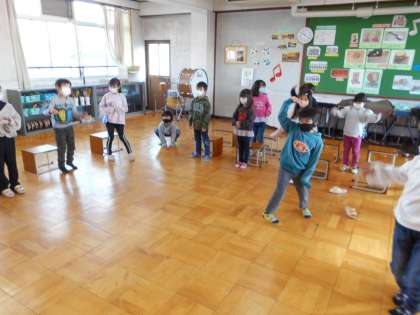 みんなで声を合わせて歌うことができないので,その動きを真似することでみんなで曲の感じを味わいました。