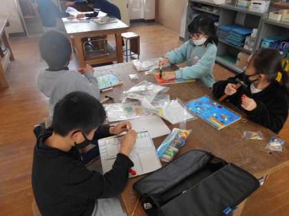 金づちや釘ぬきを上手に使って,コリントゲームや迷路を作成しています。