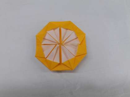 折り紙で花を折っています。