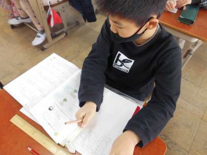 小数の単元も終わりが近づいています。テストにに向けて,教科書の練習問題に取り組みました。
