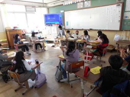 小栗栖小学校との交流学習に向けて,「わたしたちの学校じまん」の学習を進めています。