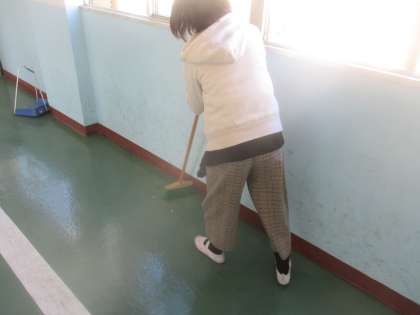 掃除の時間に隅から隅まできれいに掃除をしている姿が見られます。毎日一生懸命取り組む姿は素晴らしいです。
