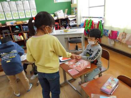 相手に分かりやすいようにほしい色を伝えながら,お店屋さんごっこをしました。