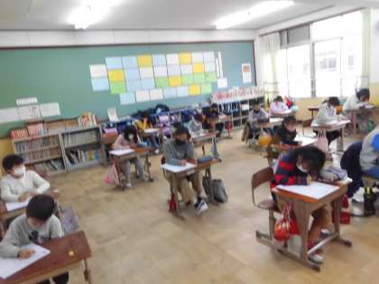 計算の仕方に悩みながらも,一生懸命にテストに取り組んでいました。
