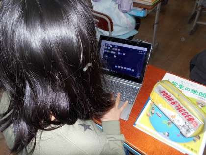 「6年生を送る会」に向けて,6年生への感謝の気持ちを詩に表しました。一人一文ずつ作ったものを,ロイロノートを使ってつなげていき,一つの詩に仕上げました。
