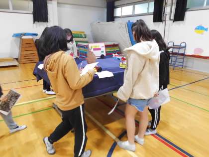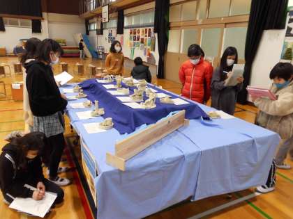 校内図工展の鑑賞をしました。友達の作品をじっくりと鑑賞し,「ここがすごいなぁ。」などとつぶやきながら見入っていました。